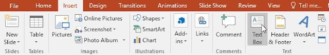 + From the Insert tab, select the Text Box command.